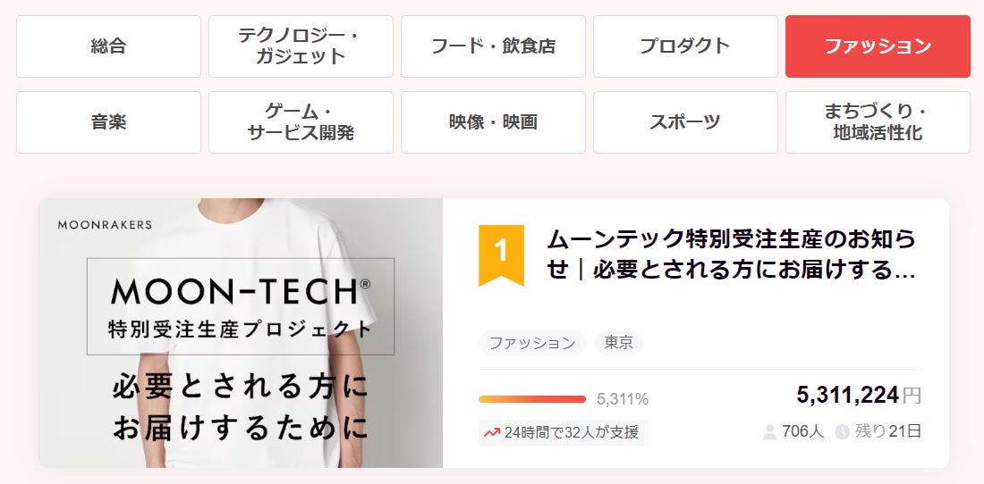 みなさまこんにちは!プロジェクト”MOONRAKERS”です。「ムーンテック®特別受注生産プロジェクト」、なんと開始より8日連続でファッション分野ランキング1位!そしてすでに700名を超えるみなさまにプロジェクトへの応援をいただいており、すでに昨年5月に実施した同一キャンペーンでの応援人数を1週間で超えています。改めまして、たいへん多くのみなさまよりに喜んでいただき、応援いただきましたことを心より嬉しく感じています。ほんとうにありがとうございます!!!わたしたちはこの結果を踏まえ、すでに生産チームのすべてと最速でのお届けに向けた準備を進めています。お約束したお届け時期より1日でも早いお届けが出来ますよう全力を尽くしてまいりますので、今後とも何卒よろしくお願い申し上げます。わたしたちMOONNRAKERSは「理想」をおいかけるプロジェクトですが、そのテーマの一つに、「自前主義でヨコのつながりが少なく、よって共創による産業変革が進まない」というファッション産業の構造変革があります。その「技術を抱え込まず広く解放して、コラボレーションを積極的に進める」という独自のビジネスモデルは、多くのファッションビジネスの関係者に驚きをもって迎えられています。本年も「スーツに見える作業着」で服の在り方を変えた”WWS”とのコラボレーションが大きな話題をよび、マクアケでも1400名以上の方に応援を頂きました。そして、その好評を受けて実施した先週末の一般販売ではなんとマクアケでのプロジェクトを超えるペースとなり、カラー・サイズで若干の残はあるものの、ほぼ1日で用意した1000枚近い商品が瞬時に売り切れるという状態になりました。もちろん1000枚という枚数は、大手ブランドや小売店の展開する数量から言えばずいぶん少ない数量です。しかし、わたしたちのような拘りが強く尖ったブランドやプロジェクトの1品番の数量としては、通常はシーズンを通じて消化する量であり、少なくとも1日や2日で売り切れるようなことはありえません。わたしたちも、WWSもそこに関してはごく誠実であり、けして品薄商売をやろうとしている訳ではありません。よって、わたしたちは現在、みなさまからの支持に応え、最速での補充に全力を尽くしています。(もし、今回買い逃された方がいらっしゃいましたら、MOONRAKERS公式WEB(https://moonrakers.jp/)TOPページの一番下にメルマガ登録がありますので、活用いただければ幸いです。最も早い補充情報はこちらより発信してまいります。)ユーザーのみなさまからも、「”WWS”と”MOONRAKERS”は基本ライバルなのかと考えていたので、今回のコラボにはびっくりしました。でも素敵なコラボですね!」といった驚きと喜びの声をたくさんいただき、こうした今までにないコラボレーションに多くの方々より共感をいただいけたことをとても嬉しく感じています。わたしたちは、それぞれ単独では、まだまだ非常に小さな存在です。しかし、「共創/コラボレーション」で、ファッション産業の常識を変えるモデルケースを創ることは可能ではないかと感じています。そして、みなさまの応援がそれを裏打ちし、みなさまの声がそれを大きく後押ししてくれているように感じています。わたしたちは勿論ですが、失礼を承知で言えば”WWS”も、「馬鹿者≒MOONNRAKERS」です。そしてそれを応援いただくみなさまもまた、常識を覆すことを是とする「MOONNRAKERS」ではないかと感じています。多くのMOONNRAKERSが集い、産業を変え、日本を変えていく。それはもちろんまだ夢物語です。しかし、多くの仲間を巻き込み。みなさまとともに。その物語はすでに歩み始めているように感じています。プロジェクト”MOONRAKERS”