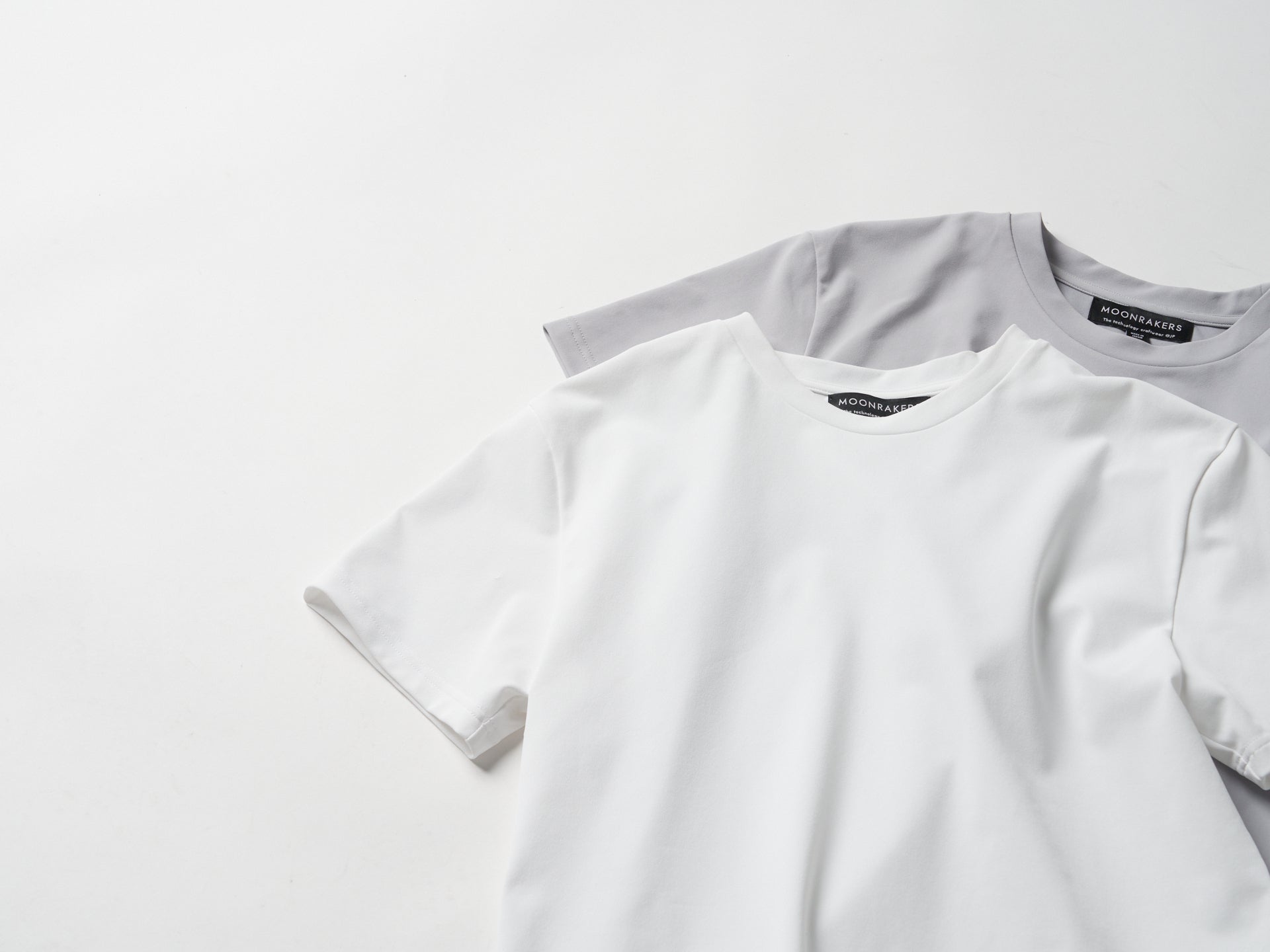 「MOON-TECH®」はもっとも透けが気になる「白」でもJISで定められた防透け性基準で「Aランク/93以上」という非常に高い防透け性能を持ち、「透け」を気にせず着用が可能な白Tシャツを革新する商品です。