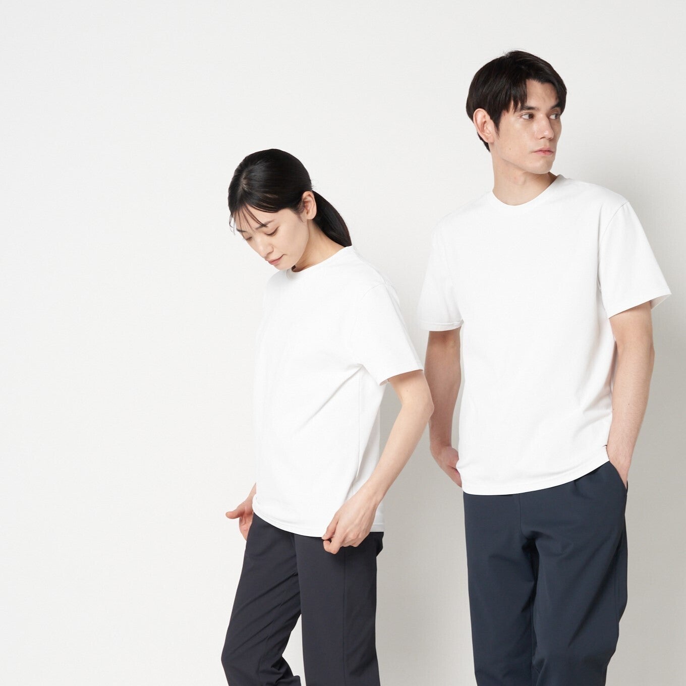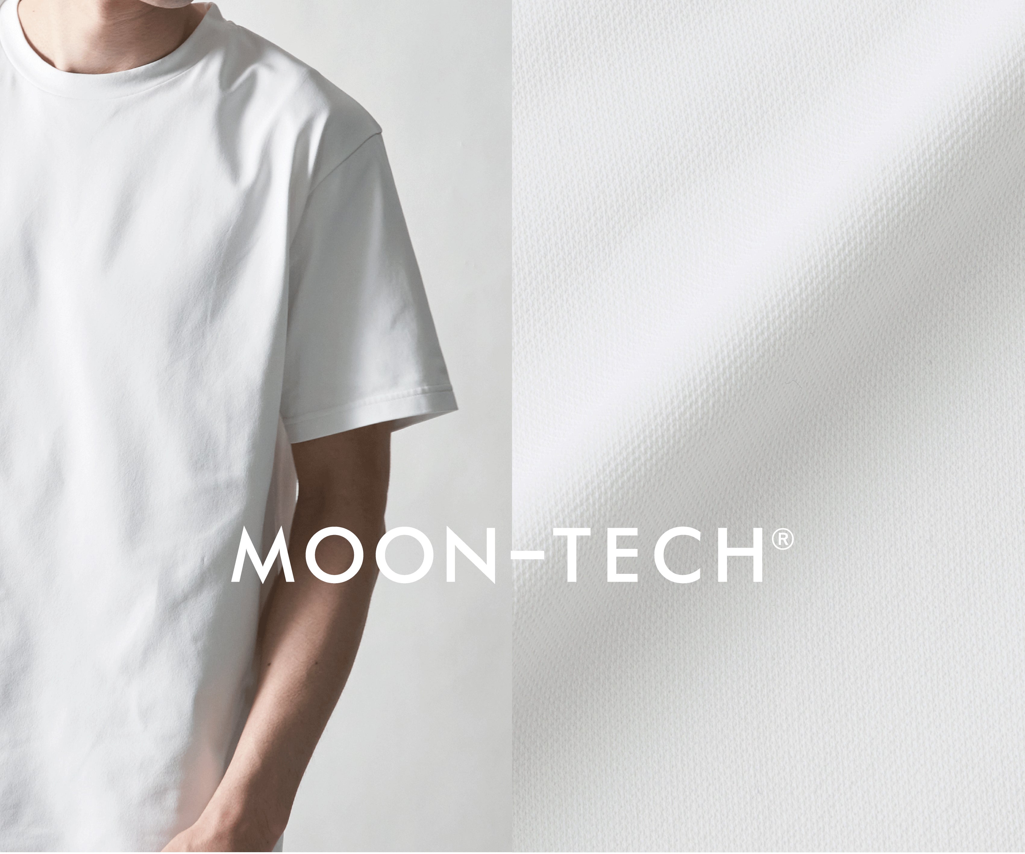 「MOON-TECH®」は、特殊なスプリング状の繊維構造で高いストレッチ性と形態安定性を持つ特殊原糸を生地の裏面全面、Tシャツのすべてのパーツに贅沢に使用しています。