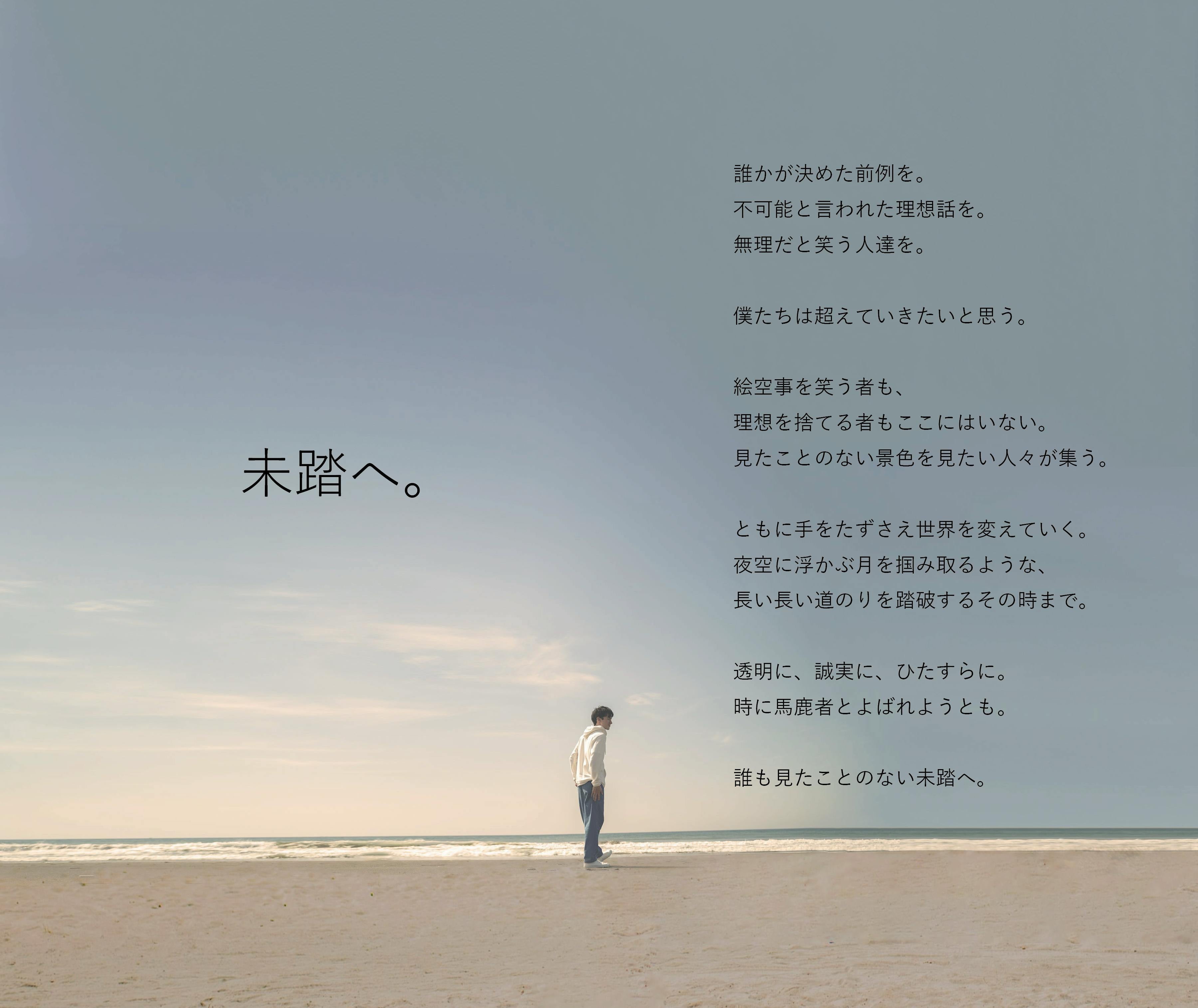 それはモノづくりの始まりとなる素材から、みなさまに商品をお届けするファッションビジネスの仕組まですべてを変え、快適で便利で美しい「ミライの生活」をみなさまとともに創造するという「未踏」への挑戦。
