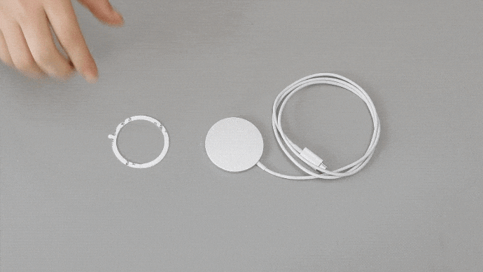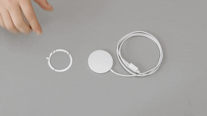 MagicリングにMagSafe充電器の背面(メタルリングが貼られた面)を吸い付けてから、iPhoneをMagSafe充電器にセットします。