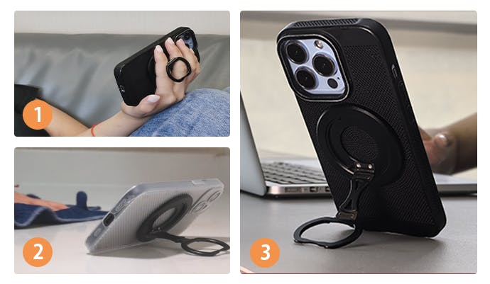 革新的な2段階リングを採用し、お好みの角度に調整できます。縦にも横にも対応し、バンカーリングがしっかりとサポートします。