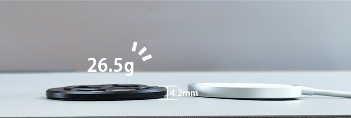 厚さは4.2㎜で、重さが26.5gまでもっと薄型に改良成功、スマホに付けても全然違和感ない。どこでもピタッと!超軽量!コインと同じくらいの幅で、折り畳み可能で持ち運び便利で、片手でも簡単に折りたたんで収納できます。