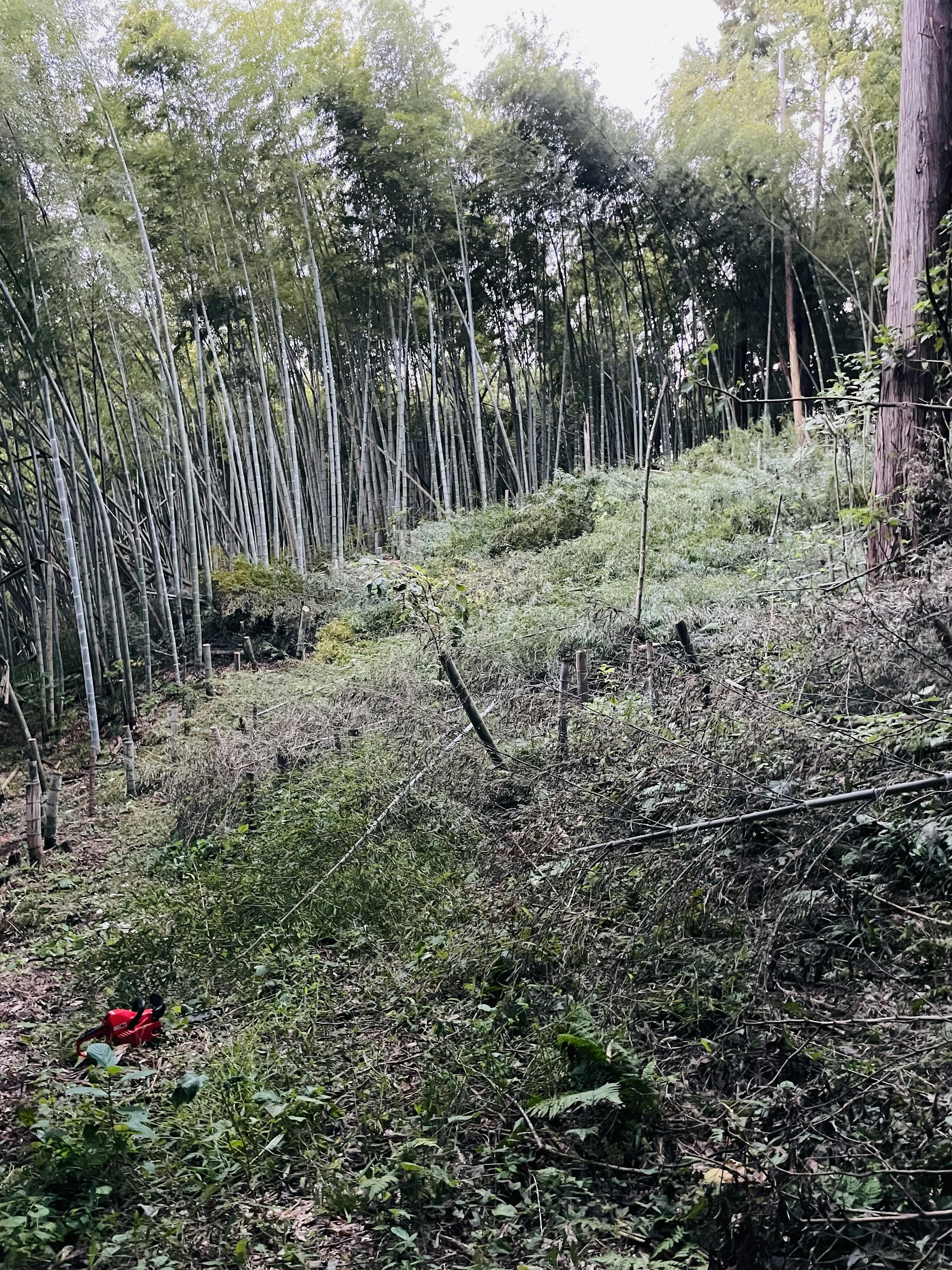 人が通れないほど混み合っていた竹林を、綺麗さっぱり整備しました。画像は植樹予定区画の一部です。