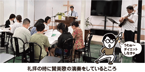 ずっと交流があった地元(伊万里市)にあるペヌエル教会の牧師先生が、私がギターを弾けることを知り、礼拝の時に賛美歌を演奏してください。と頼まれました。軽い気持ちで引き受けましたが、日曜の朝11時に始まる礼拝に、クリスチャンでもない私が毎回参加する事になってしまったのです。