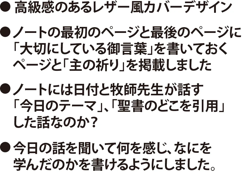 教会の牧師先生も絶賛してくれて、知り合いの教会をたくさん紹介してくれました。もしかしたら、全国にはこんなノートを必要としているクリスチャンのみなさんが大勢いいらっしゃるのではと思い、このプロジェクトを始めることにしました。