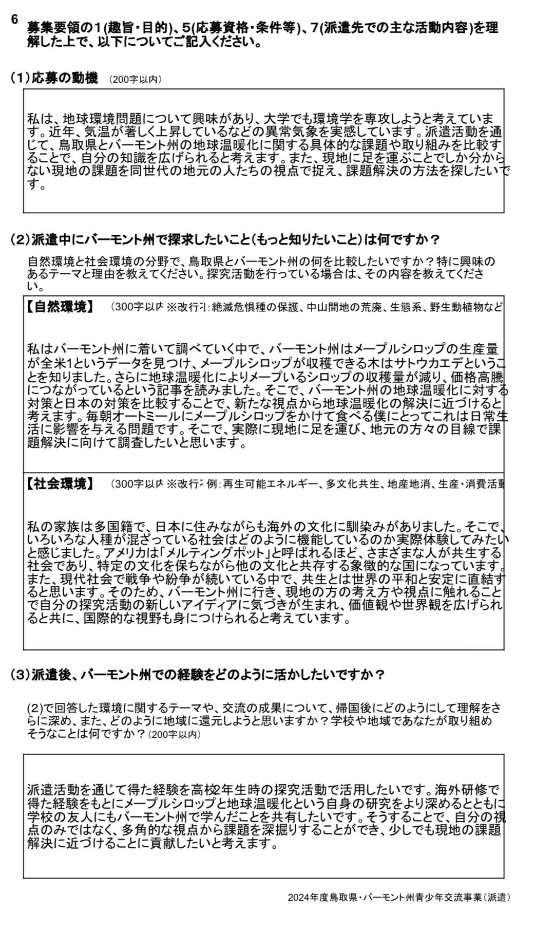 7/2 鳥取県・バーモント州青少年交流事業(派遣生徒募集)に応募