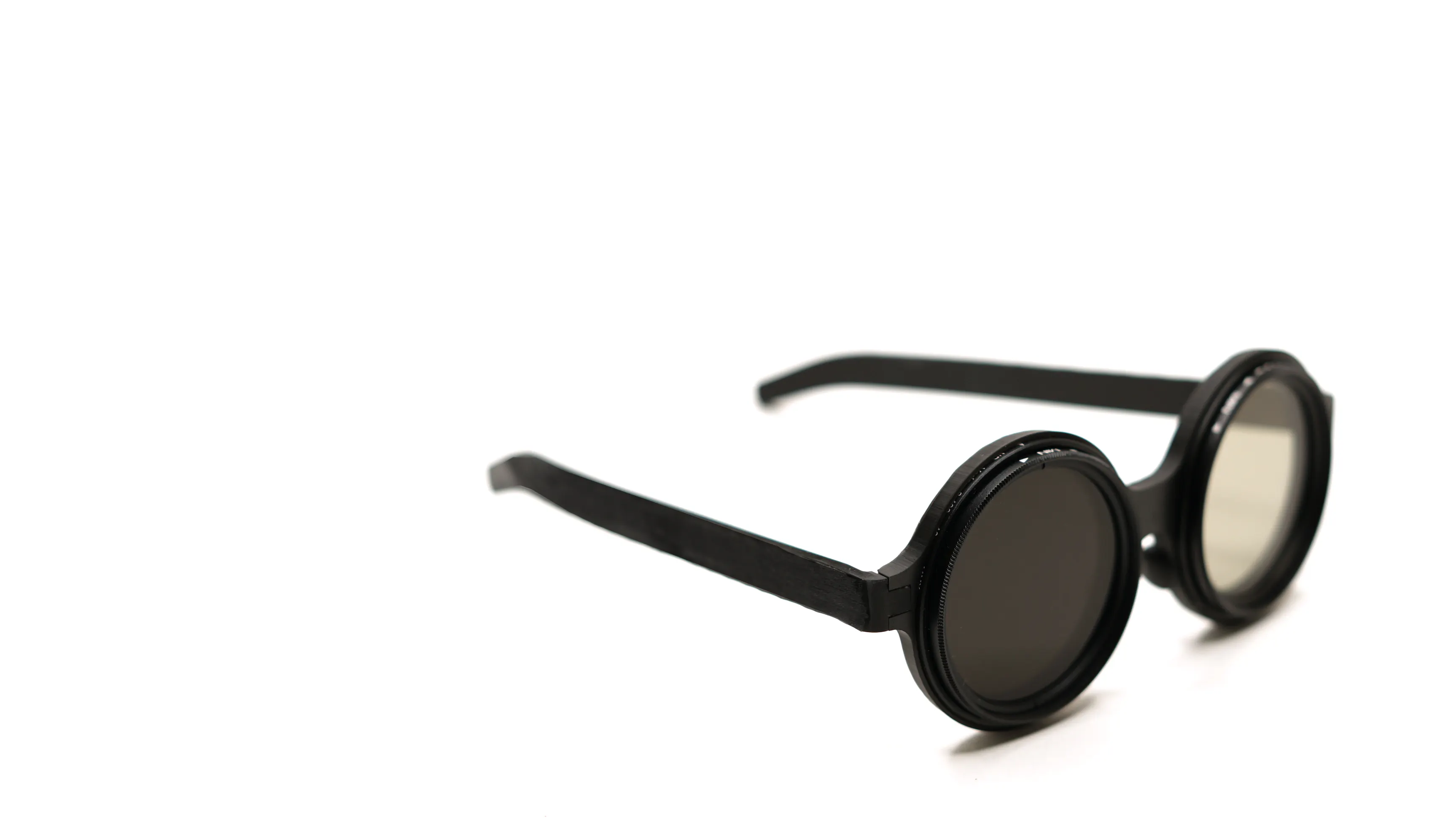 サングラスの濃度を自由に調整できるので太陽のまぶしい時は濃度を濃く、曇ってきたら濃度を薄く調整することが可能