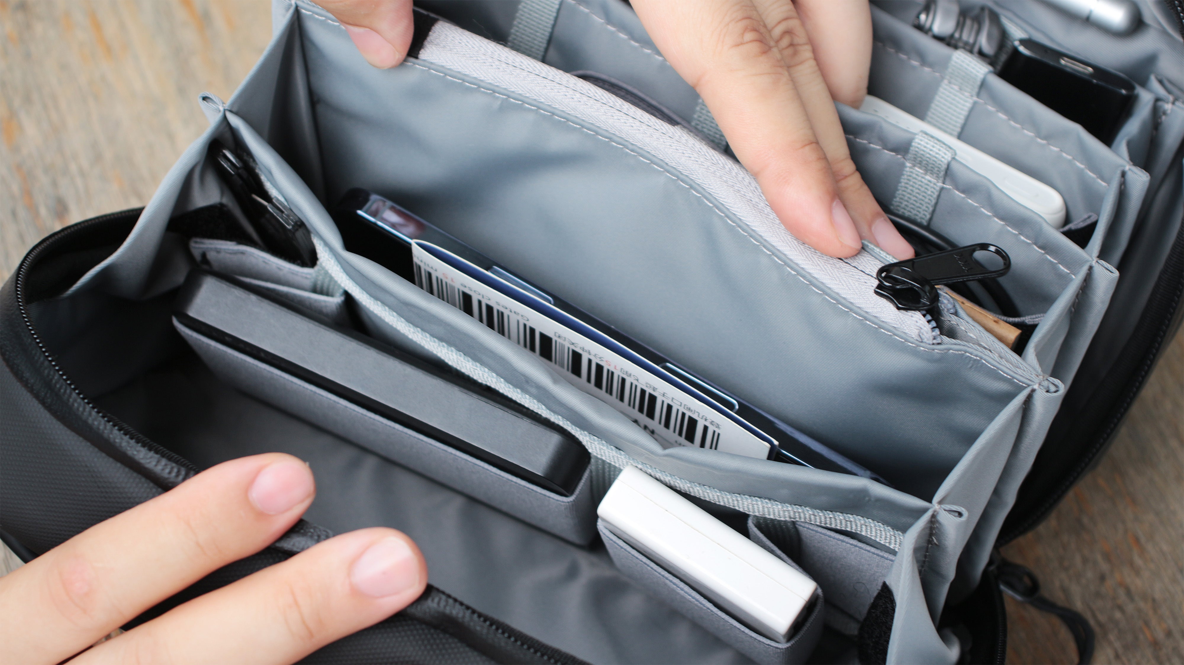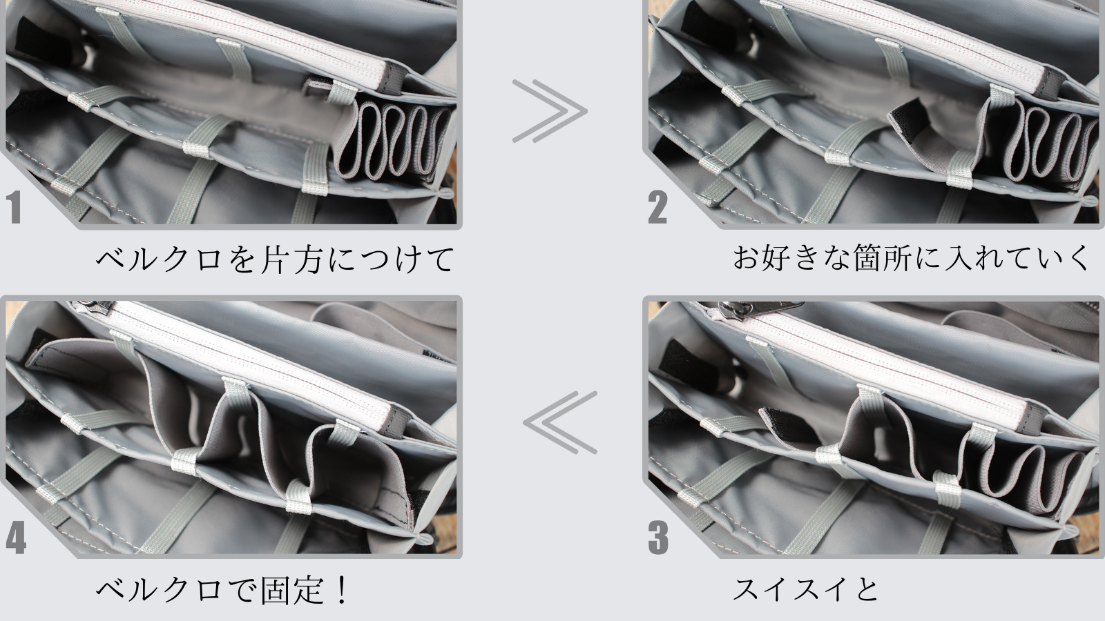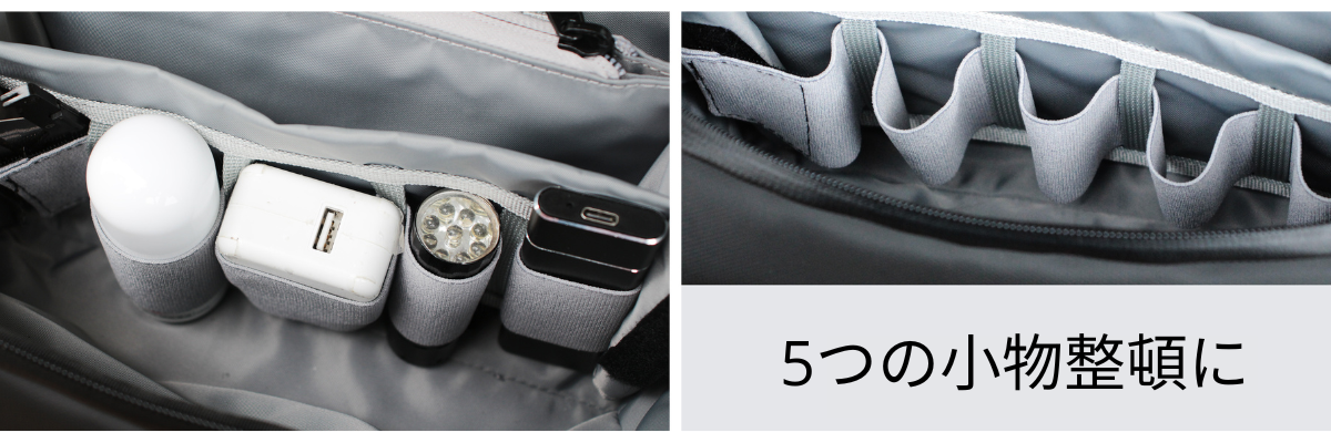 バッグの中でガジェットが暴れ回るのを防ぎます。