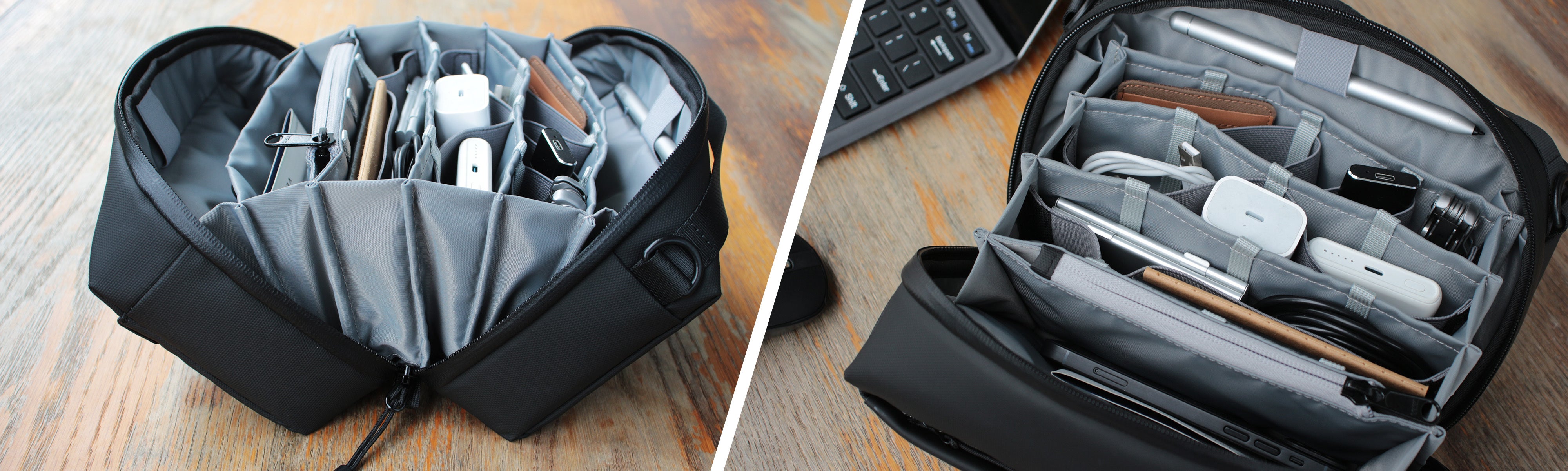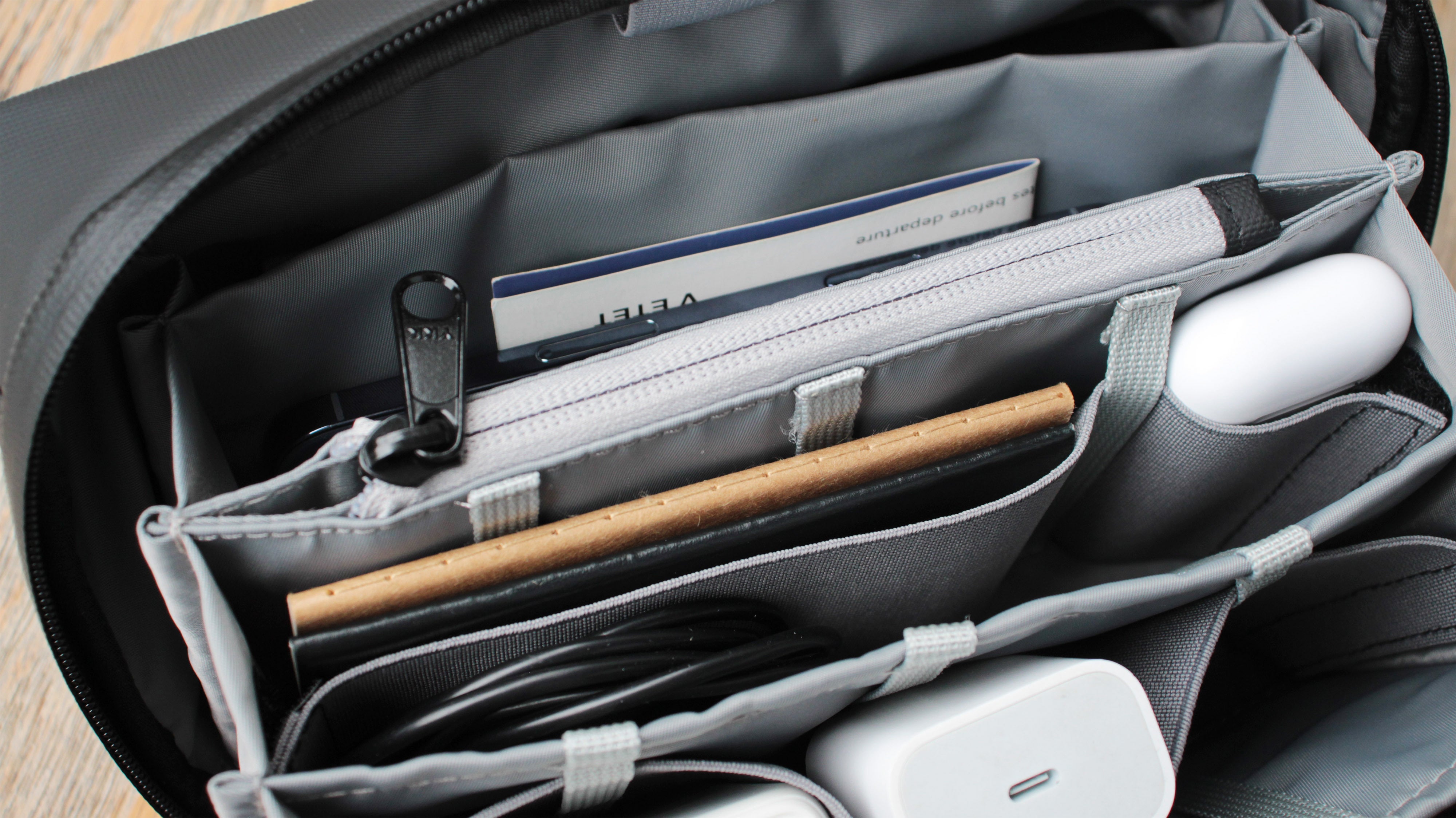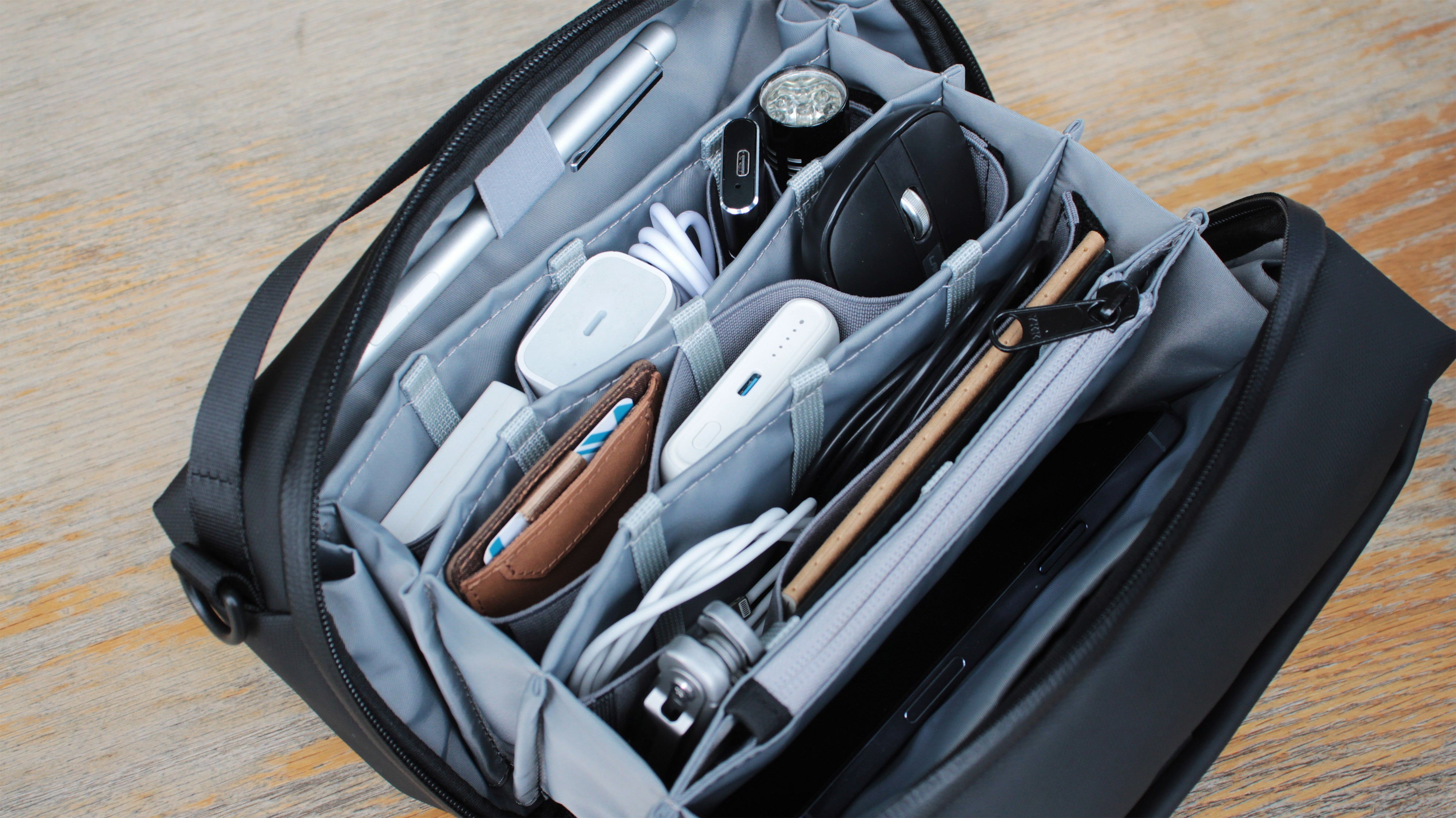 バッグの中でガジェットが暴れ回るのを防ぎます。