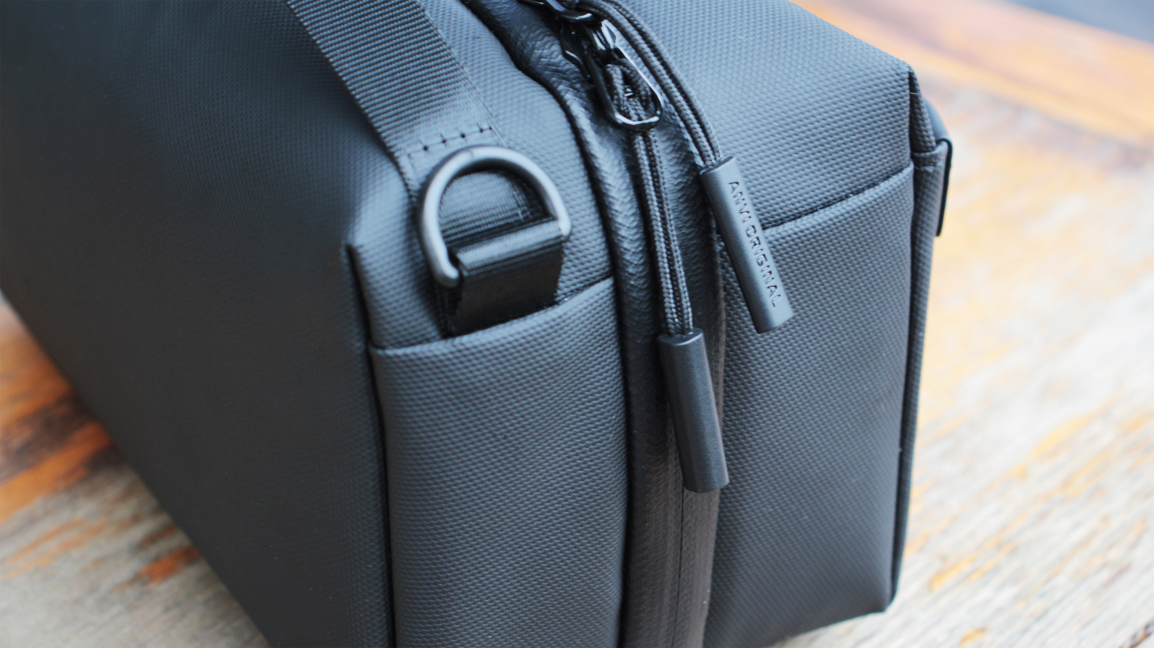 Alex T1の表面は、900D(デニール)のPUコーティングナイロン。ゴツっとした厚めの生地を使いながらも、コーティングのおかげで見た目は高級感があります。多くのANVIシリーズに使われている生地を採用。