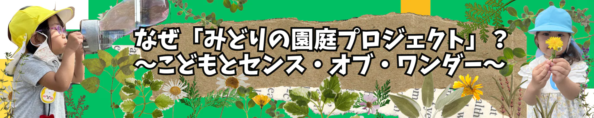 例えば…木登りできる樹木を植えたい、もっと野草を増やしたい、ビオトープのような水場を作りたい…など、子どもたちがワクワクドキドキ冒険したり、植物や昆虫など小さな命に出会い心を動かしたりする環境を整えていきたい!と考えています。