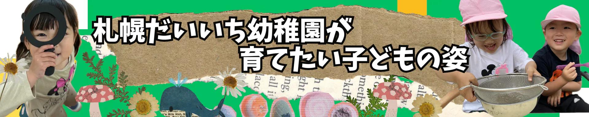 私たち札幌だいいち幼稚園では、子どもたちの「やってみたい」から始まる遊びや活動を支え、一人ひとりの成長に繋げる保育をしています。そして、その成長は子どもの「今」を見つめるだけではなく、10年後20年後、子ども達のずっと先の将来を見ています。予測不能な未来を、誰かと手を取り合いながら自分の足で立ち、自分たちの手で試行錯誤しながら未来を切り拓いていける人を育てています。