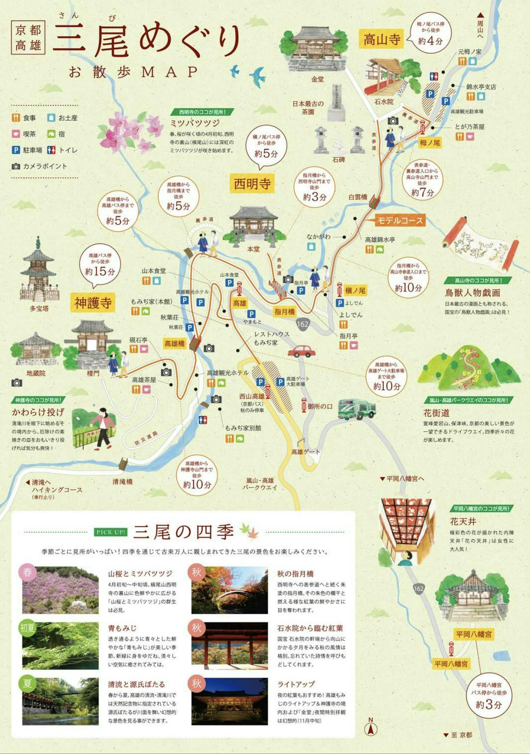 それぞれには有名なお寺、神護寺・高山寺・西明寺があり、この地の歴史を支えています。
