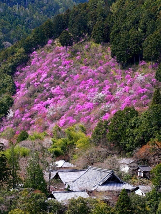 紅葉の名所である高雄をさらに繁栄活気づけるべく、先人者の方々の想いが込められた春のツツジ。