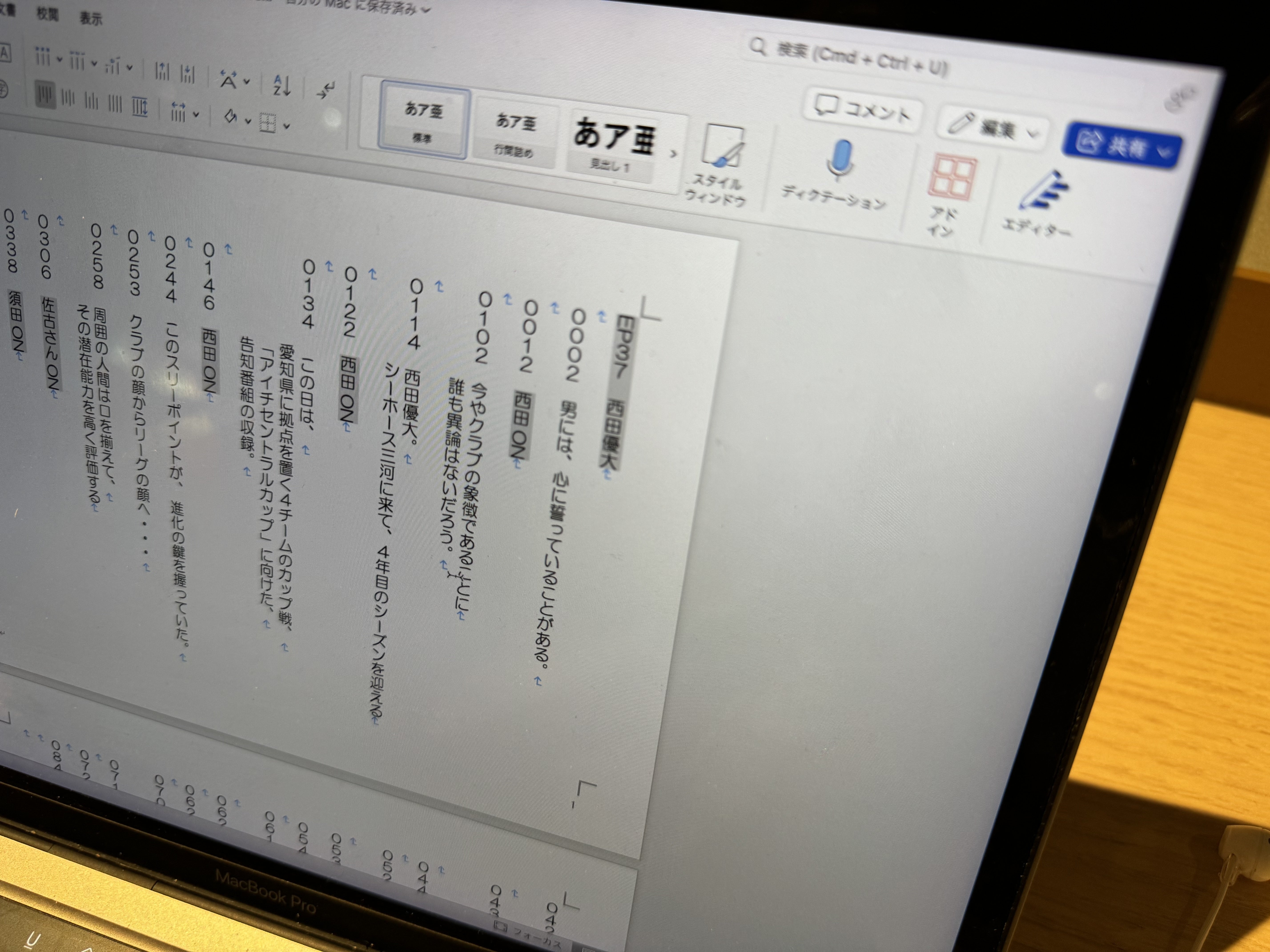 今日は現時点のナレーション原稿を
