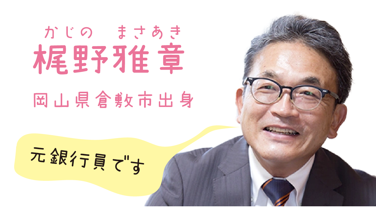 私は岡山県倉敷市出身の梶野雅章(かじのまさあき)と申します。