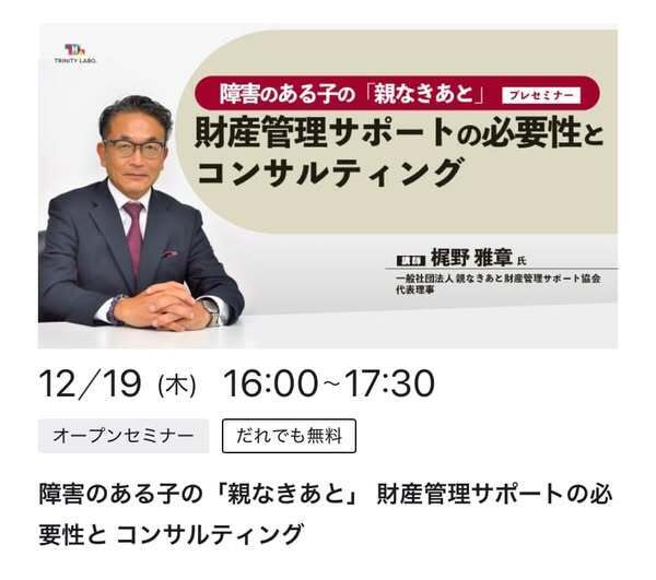 「親なきあと」財産管理サポートのオンラインセミナー 12月19日(木)16時~17時30分