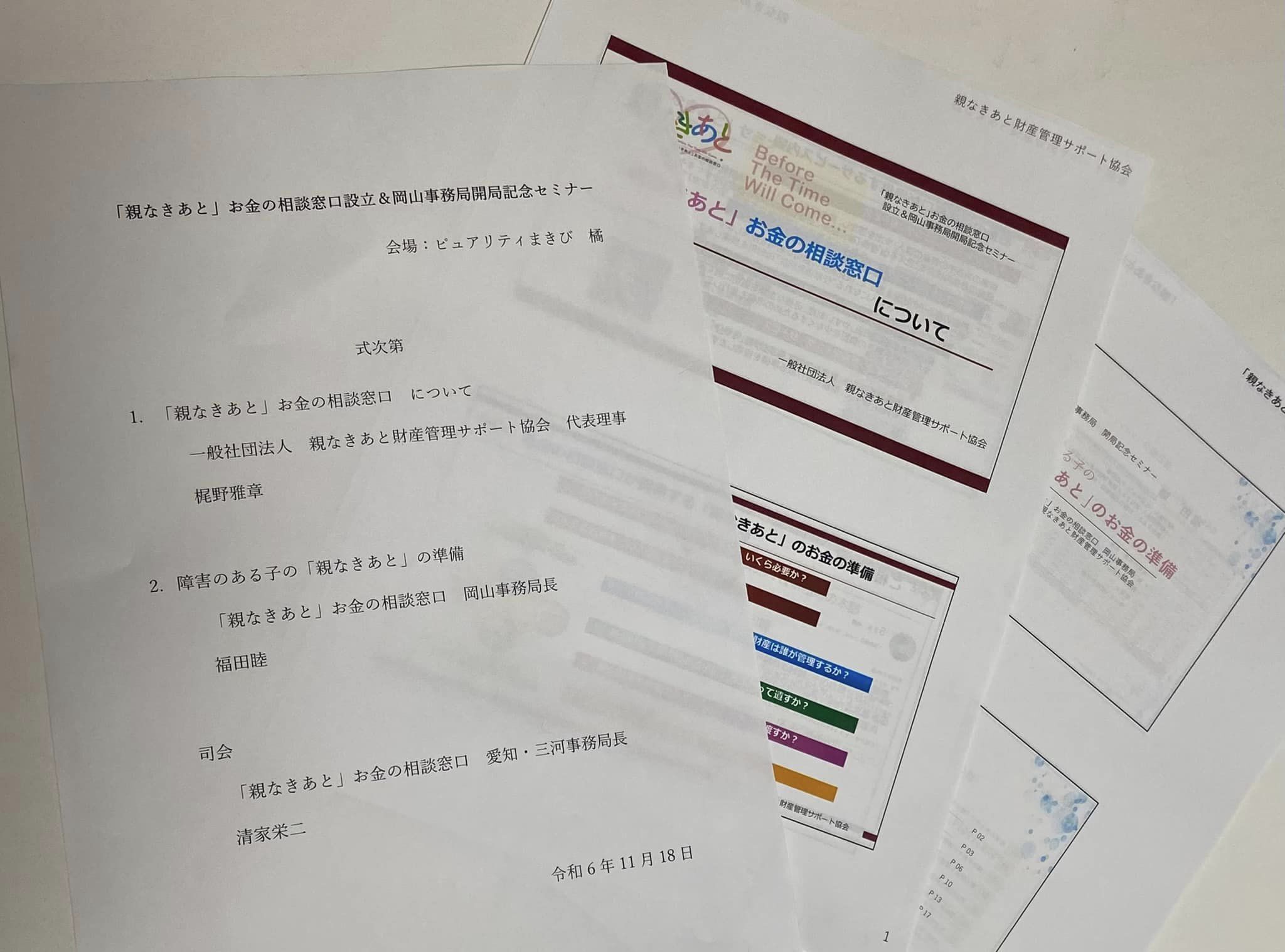 岡山事務局長の福田 は、「親なきあと」のお金の準備をご説明させて頂きました