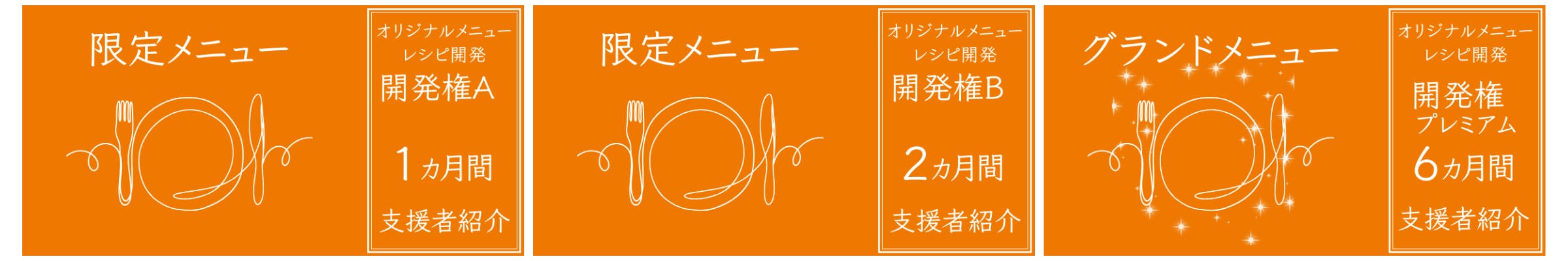 これまでご来店いただいた事業者様の ” 一緒に宣伝しよう ” という声を参考に、「オリジナルメニューレシピ開発権」をご用意いたしました。