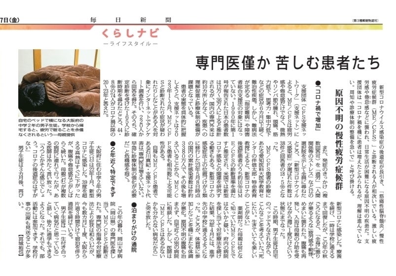 ▼ME/CFSと新型コロナ後遺症の診療体制についての政策提言
