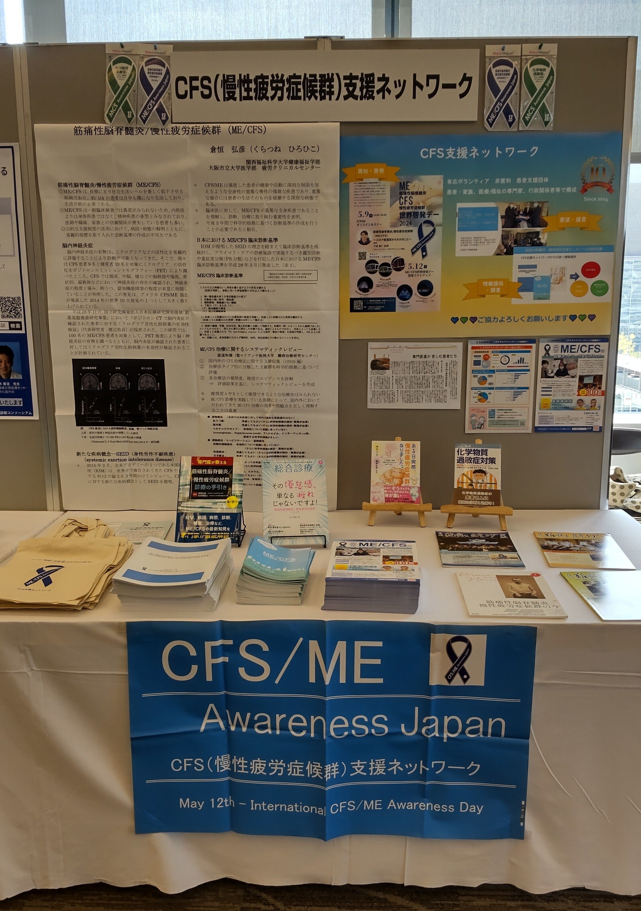 9月7日(土)~8日(日)に開催された日本病院総合診療医学会学術総会に、当会はME/CFS啓発のためのブース出展をいたしました。朝7時半から展示の準備スタート!