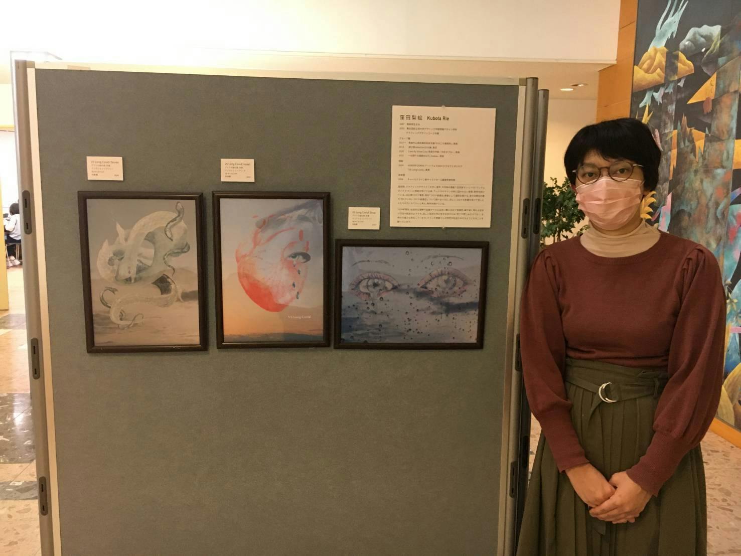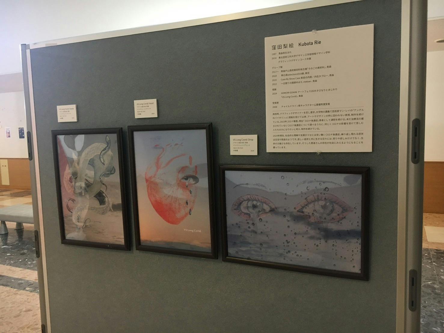 青森県立保健大学の学祭にてアート作品の展示と新型コロナウイルス後遺症啓発