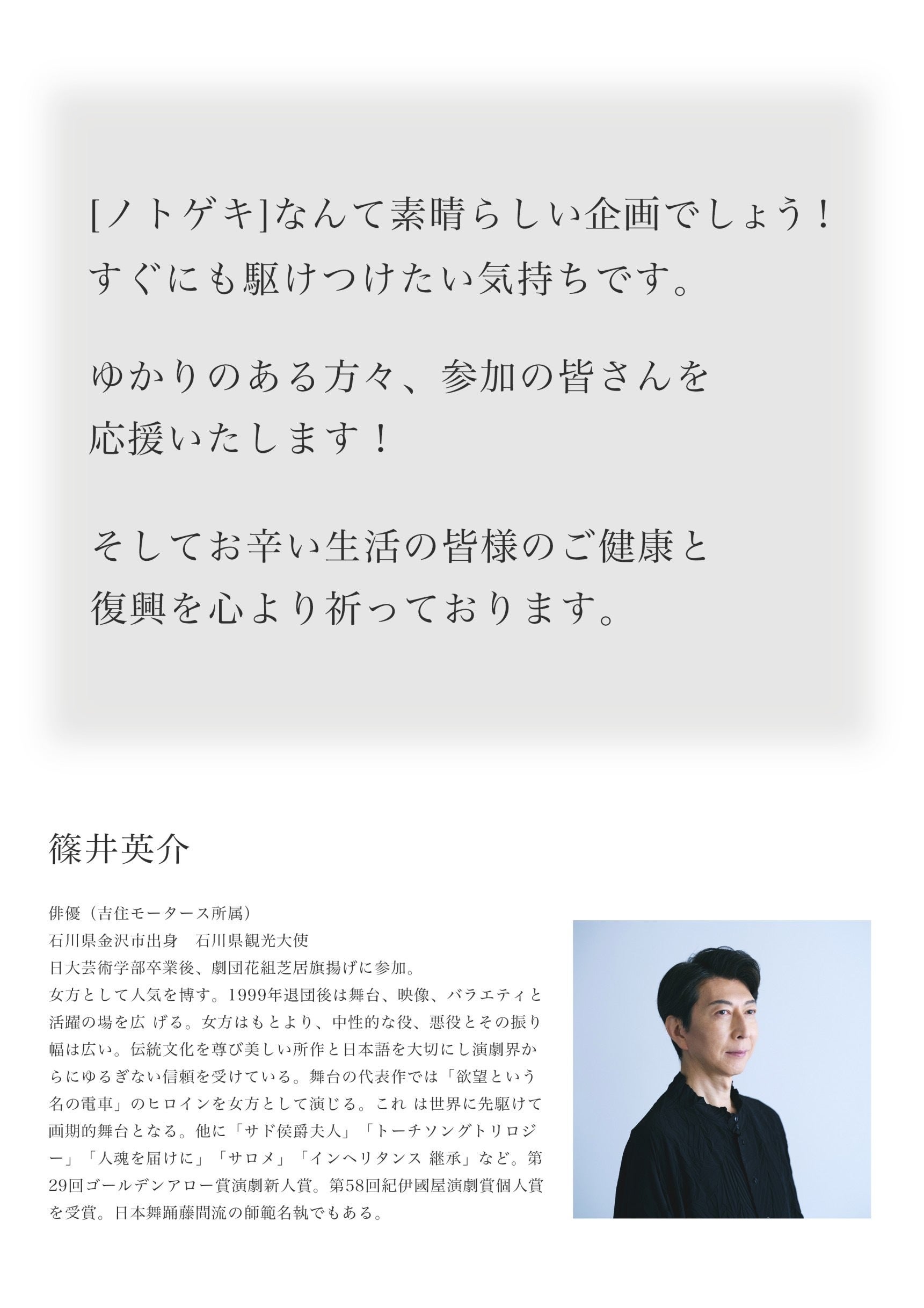 ノトゲキ瀧腰の大学の先輩であり、同じ石川県出身俳優でいらっしゃる、篠井英介さんより、『能登版・銀河鉄道の夜』公演への応援コメントを頂きました!