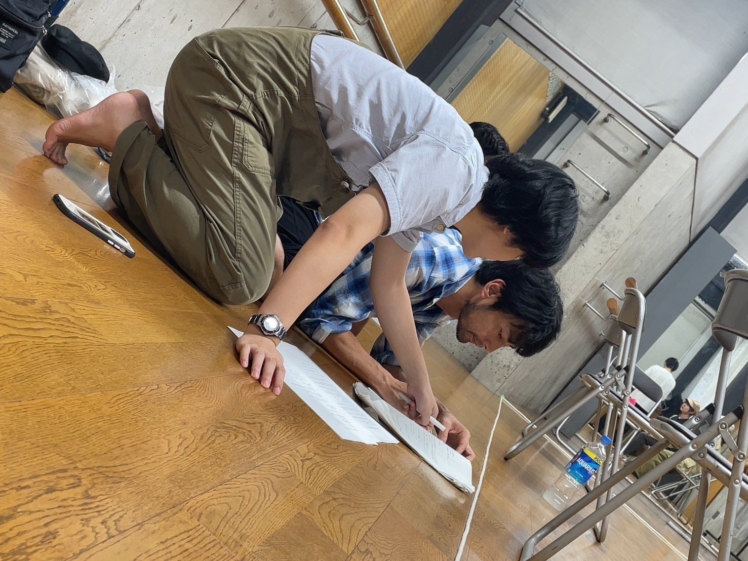 今回、彼女の仕事は多岐に渡ります。稽古スケジュール管理から始まり、小道具手配・製作、稽古場代役、稽古場でブラッシュアップされた変更点の記録、稽古の動画撮影と共有、台本の変更点反映作業…他にもきっと色々やってくれているはずです。稽古場では常に真剣かつニコニコ。ぶっちゃけ、わたしの癒しキャラです!