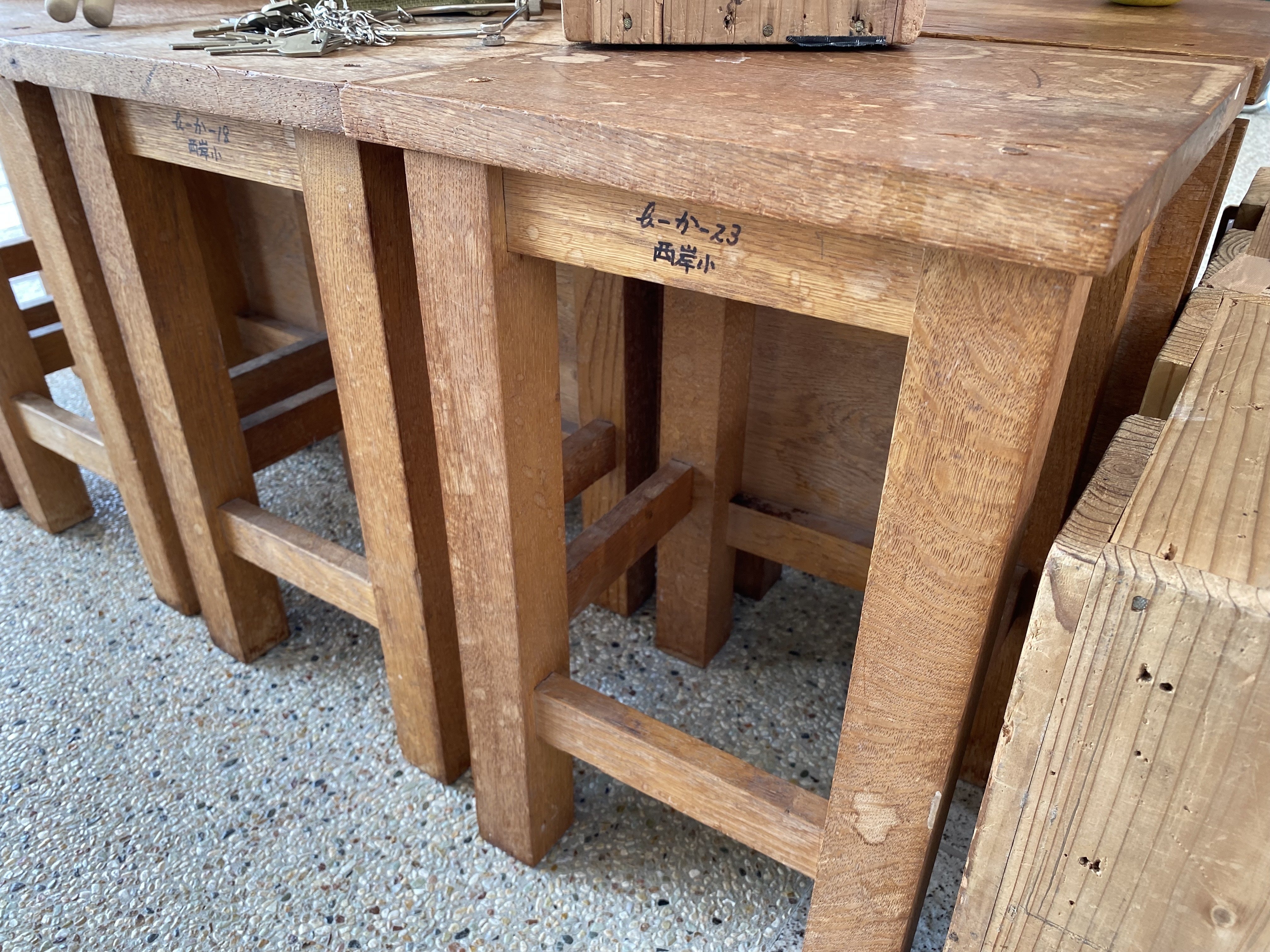 花木誠さん、通称まこっちゃんは、勢登の2学年下の中学の後輩になります。地元を愛し、地元で面白い事をどんどんしようとしている仕掛け人でもあります。お借りした図工椅子には「西岸小」の文字が。