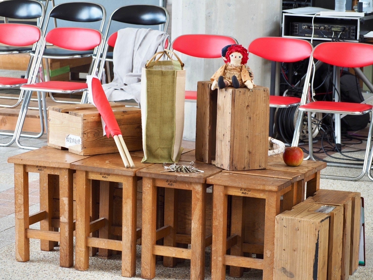 図工椅子と楽器は「hanasaka」(代表・花木誠さん)からお借りしました!