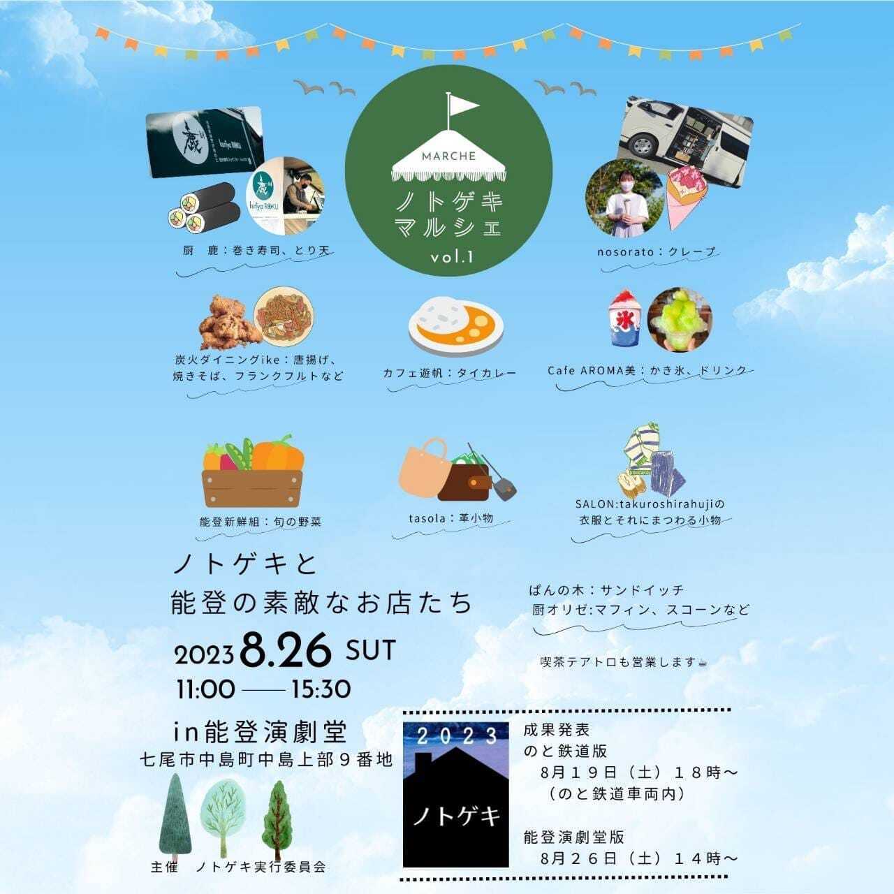 また、演劇の上演だけでなく、音楽のライブ・石川県立七尾東雲高等学校演劇部による〈震災をテーマに今年県内で発表した演劇作品の上演〉、地元の飲食業の方をメインとした屋台・マルシェを同日開催し、演劇の観劇だけに留まらない、お祭りのように笑顔が溢れ、賑わう新しい劇場体験としての場の創出を目指します。