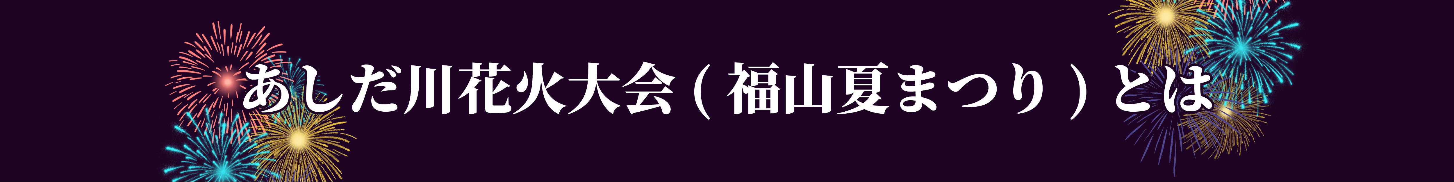 そして15日は福山夏まつりのフィナーレを飾る「あしだ川花火大会」~福山まちじゅう花火~。芦田川の広い水面に映る花火は福山ならではの美しさ。芦田川の両岸が観覧席になっており,全身でその迫力を体感できます。参照:福山夏まつり(ふくやまなつまつり) - 福山市ホームページ