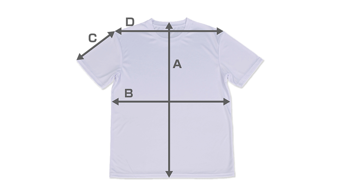 身丈(A):71cm、身幅(B):53cm、袖丈(C):21cm、肩幅(D):48cm