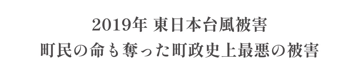 人口流出が加速した2011年の東日本大震災から6年後の2019年、次に丸森町を襲ったのは台風でした。令和元年東日本台風は、町民の尊い命を奪ったとともに、家屋や農地にも甚大な被害をもたらしました。道路、河川などの公共土木施設、農作物や商工業の被害総額は470億円を超え、町政史上最悪の被害でした。被害箇所の復旧も徐々に進み、台風から5年が経過した現在は着実に復興に向けて歩みだしています。
