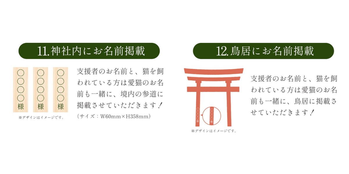 猫神神社を一緒に作ってくださる皆様へのお礼として、猫神神社グッズから猫神様になれる権利まで様々な返礼品をご用意しました!
