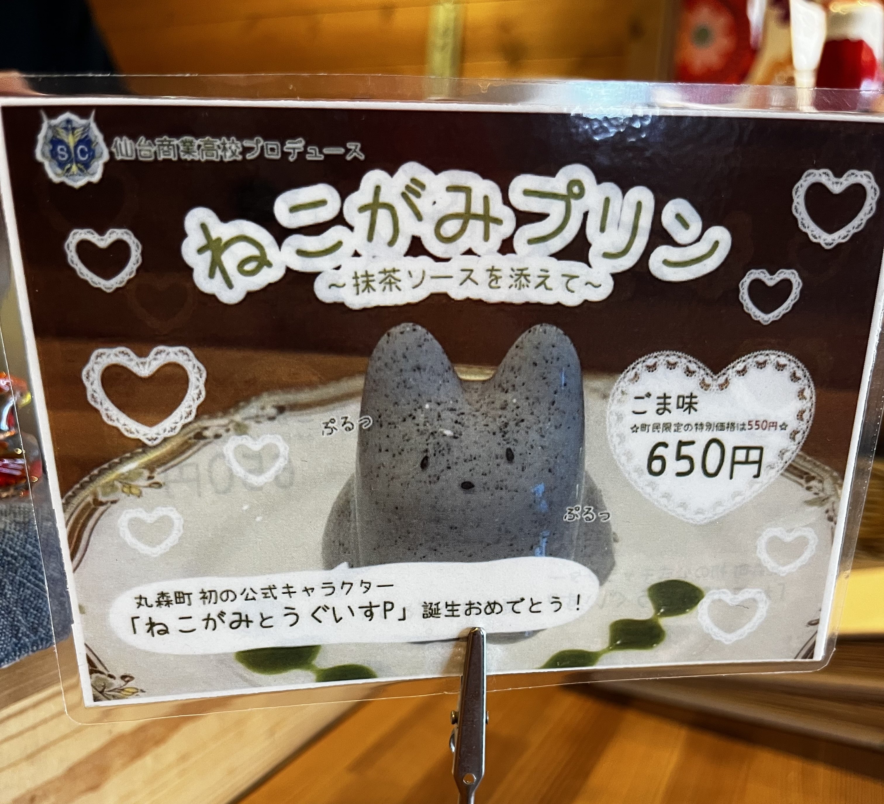 こちらは、カフェ ペルシッカさんの猫神プリン。仙台商業高校商業情報部の生徒さんと共同開発だそうです。