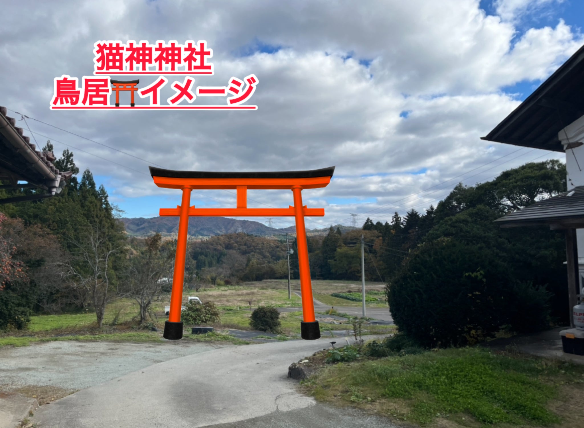 猫神神社鳥居イメージになります。集まる金額により大きさはかわりますが、、汗満額達成して、この位の鳥居にしたいです!!