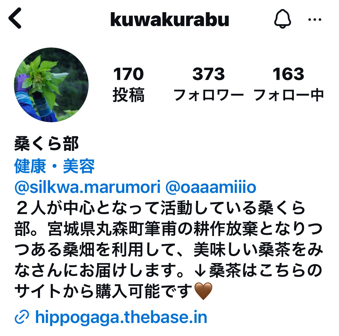 支援者紹介 14丸森町 桑くらぶ•Silkwa しるくわ 阿部 倫子さん、大橋 あみさんに、高額なご支援をいただきました。おふたりとも、地域おこし協力隊で来丸森し、移住し、事業を開始し、桑をキーワードに蚕やシルク関連を事業とされております。桑茶も私も一推し!良かったら、下記リンクから購入して見て下さい。ご支援をありがとうございました。これからも、よろしくお願い致します。https://hippogaga.thebase.in/?fbclid=PAZXh0bgNhZW0CMTEAAaaLzQqA1KPTvqEjhRrAIADShj9B0OByYh-ClDMdWDpDf7zX4gQdXsqRj14_aem__we4_uT6d88BBCmtc49F7w
