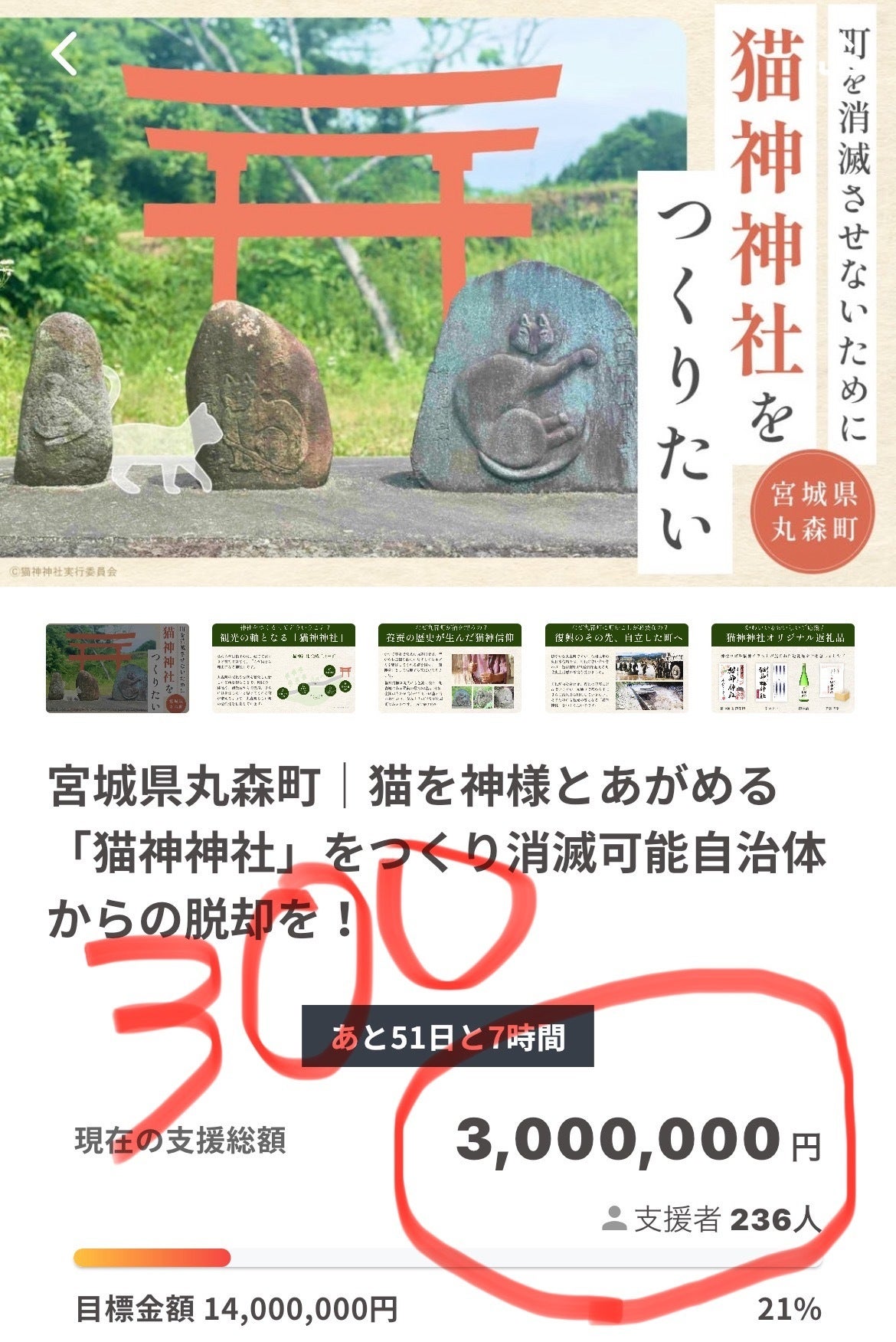 300万円に到達!ペースが上がって来ました!が、みなさん 今一度の拡散をお願い致します。