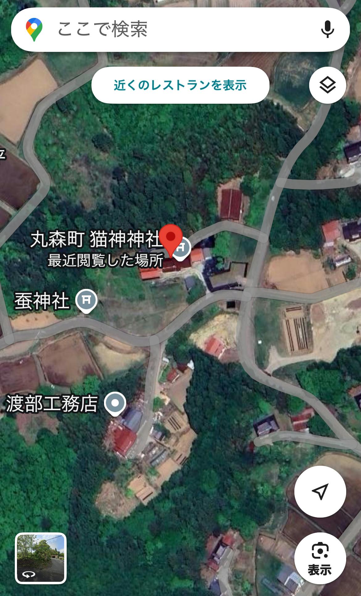 Google Mapに、『丸森町 猫神神社』のスポットが表示されるようになりました。