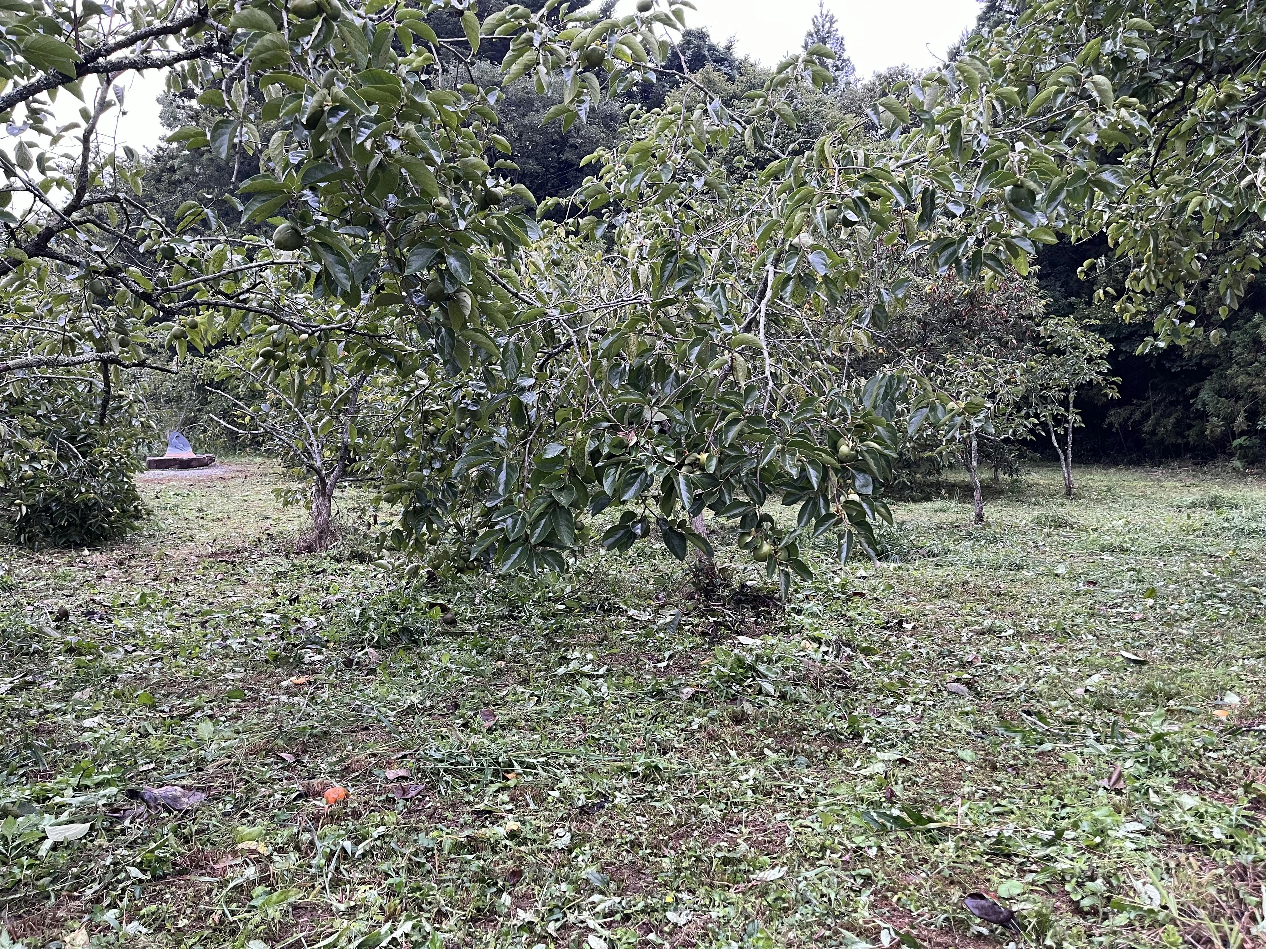 御神体周りの草刈りを行いました。柿の木の下まで、刈払い機を入れて、キレイになり、見通しがよくなりました。