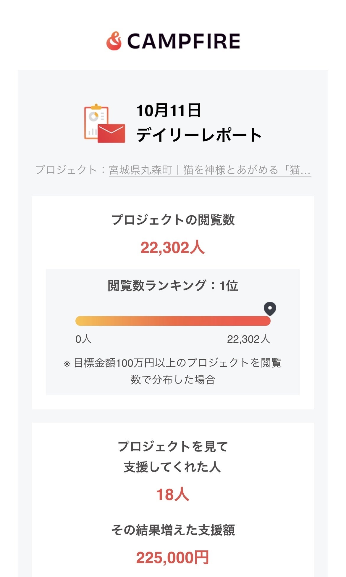 100人の方にご支援を頂きました。ありがとうございます。気を引き締めていきます。1円たりとて、皆様にとっては大事なお金。大事に猫神神社に使わせて頂きます。感謝。