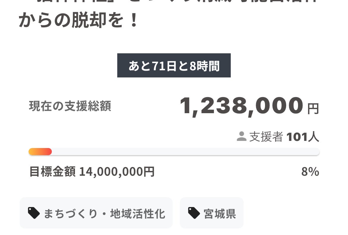 課題があります。PV数は掲載以来、ランキングで2位とか3位をキープ。昨日はランキング1位に!!でも、そこからの支援に繋がる確率が低い。丸森町がマイナーなのか?何かが足りない。。。勢いかな???テレビに取り上げられるとか、東京の雑誌とか、何か策が必要かな、と、頭を使い尽くします。ご支援ありがとうございます。ご支援がまだの方は是非お願い致します。