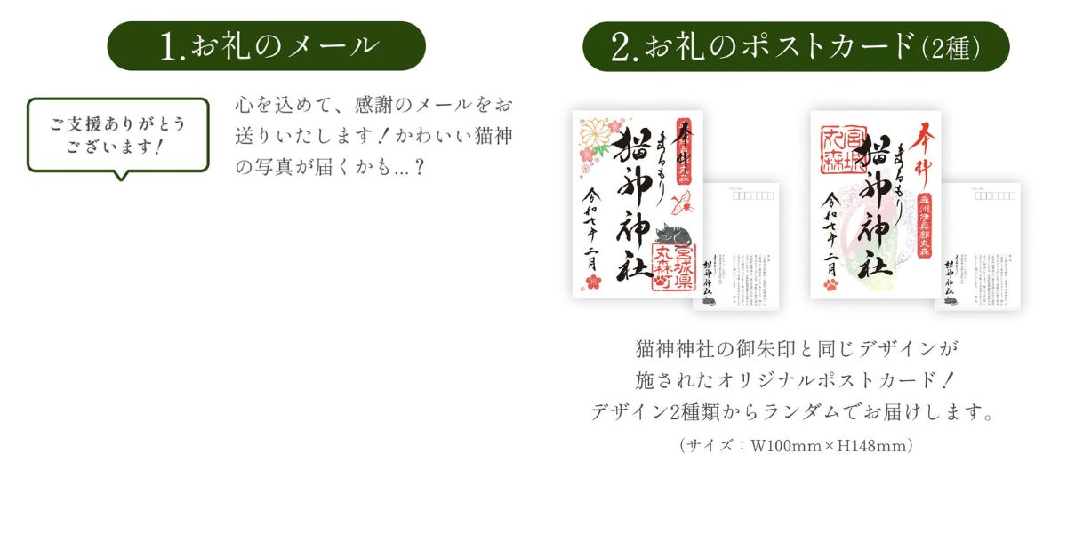猫神神社を一緒に作ってくださる皆様へのお礼として、猫神神社グッズから猫神様になれる権利まで様々な返礼品をご用意しました!