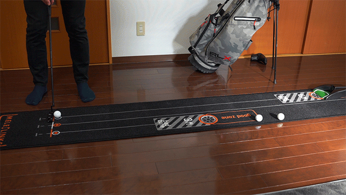 目標より手前で止まる「バッドゾーン」(=いわゆるショート)を避け、カップを適切にオーバーする「グッドゾーン」に確実に届くような距離感(タッチ)を磨くことで、実戦に近い感覚で練習が可能です。