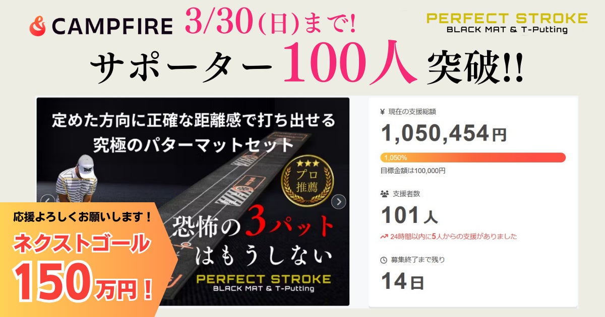 こんにちは!パーフェクトストローク新商品開発部です。まずは、以前のクラウドファンディングにて「パーフェクトストローク ブラックマット」をご支援・ご購入いただき、誠にありがとうございました。おかげさまで多くのゴルファーにお届けでき、今も多くの反響をいただいております。今後ともよろしくお願いいたします。さて、本日はグリーン周りのショートゲームを極めたいゴルファーの方に向けた新商品のご案内です!・ナイスショットでグリーン近くまで運んだのに、アプローチが寄らない・せっかく寄せたのに、パットが決まらない・流れが悪くなり、スコアを崩してしまうそんな「寄らず入らず」で悩みを抱えるゴルファーのために、「アプローチ」と「パット」を、実戦のように“流れの中で”練習できる環境を自宅に作れる新発想のマットを開発しました。その名も「パーフェクトストローク BLACK MAT GLIDE(ブラックマットグライド)」です。【Black Mat Glideの特長】・順目/逆目/ラフ/フェアウェイの4パターンから選べる本格アプローチマット・ブラックマットとシームレスに連結し、“アプローチ→パット→カップイン”を一連で練習可能・もちろん、アプローチマット単体でも購入可能。お持ちのブラックマットにそのまま接続できます!グリーン周りのミスでゴルフの流れが悪くなりがちな方、ショートゲームを極めてスコアアップを図りたい方は必見です。GREEN FUNDINGにて7月9日(水)から最大35%OFFにて先行販売スタート!https://greenfunding.jp/lab/projects/8946自宅練習に最適なウレタンボール10個も特典としてプレゼントしています!日々の練習でショートゲームの技術も磨きたい方は是非ご覧いただけたら嬉しいです!