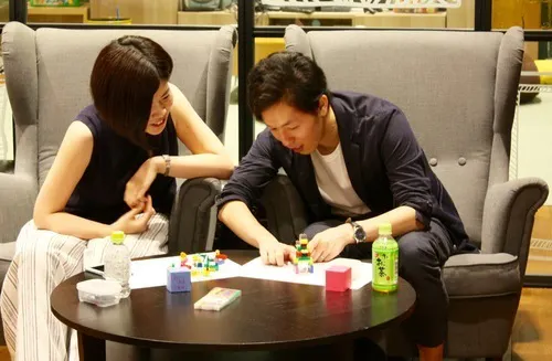 建設的な話が難しいとされる男女、パートナー同士が互いの考えや気持ちをブロックのピースに託してみる。間に作品が介在することで、逆に相手がよく見える。想いの欠片を大切に拾い集めようとする。