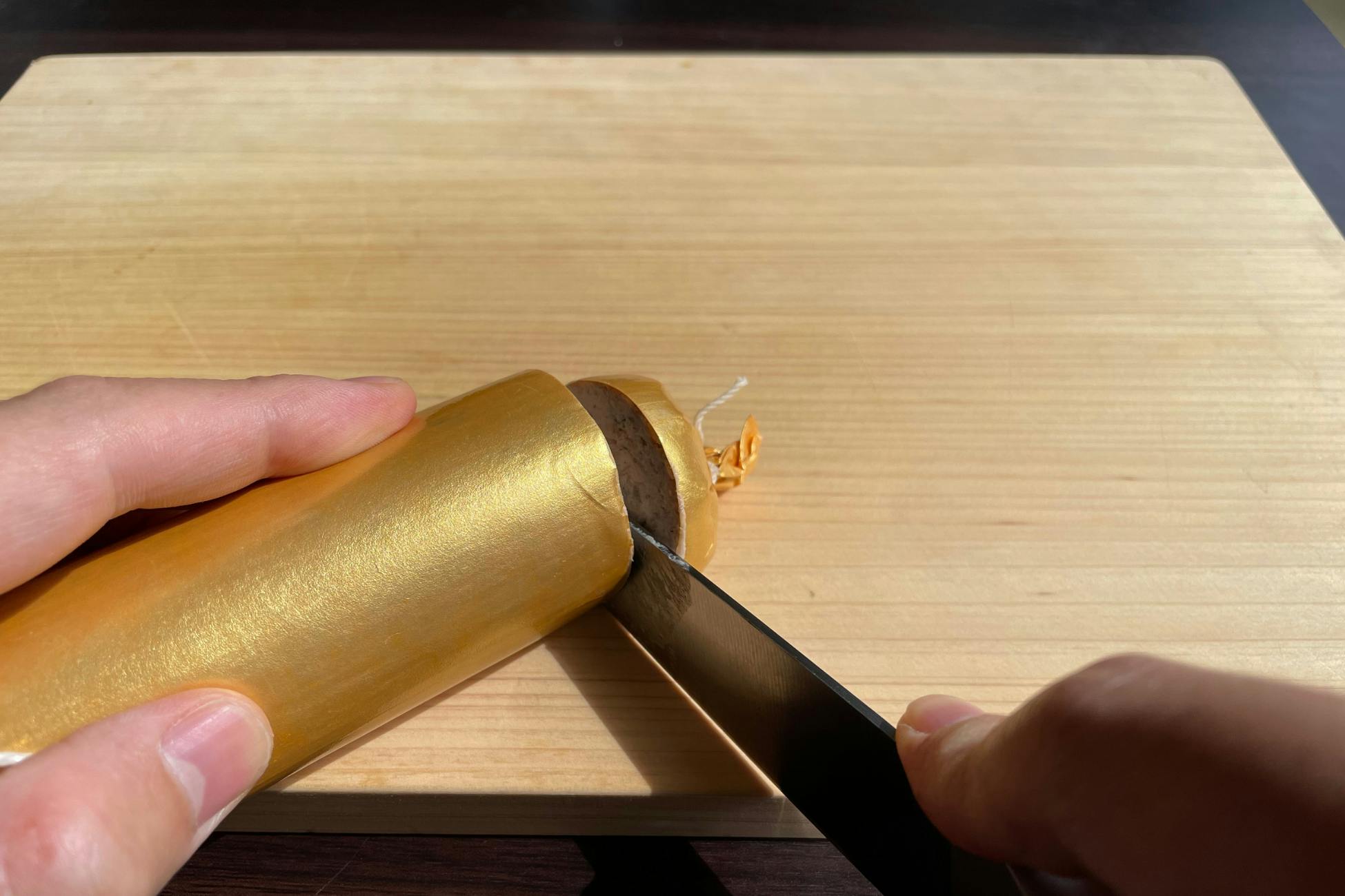 ②食べる分・あるいは取り分ける分を包丁で輪切りする!