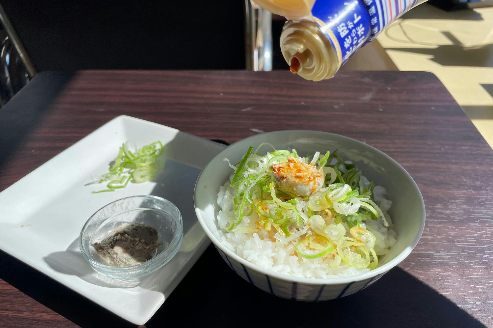 ③残りのレバーを乗せて、醤油を数滴かければ、完成です!